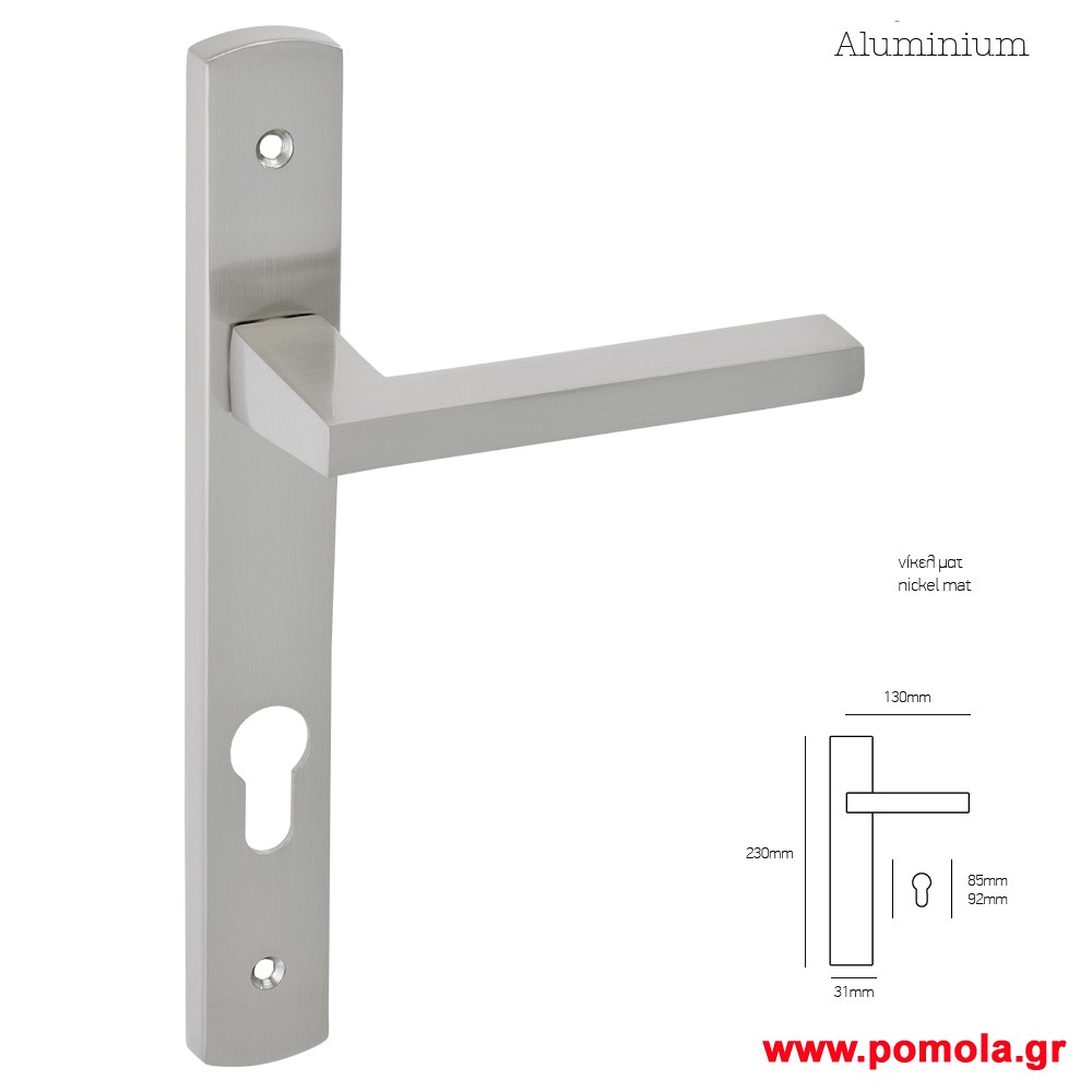028 Πομολο πορτας με στενη πλακα νικελ ματ msv