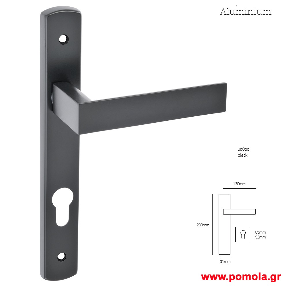 016 Πομολο πορτας με στενη πλακα μαυρο ματ msv