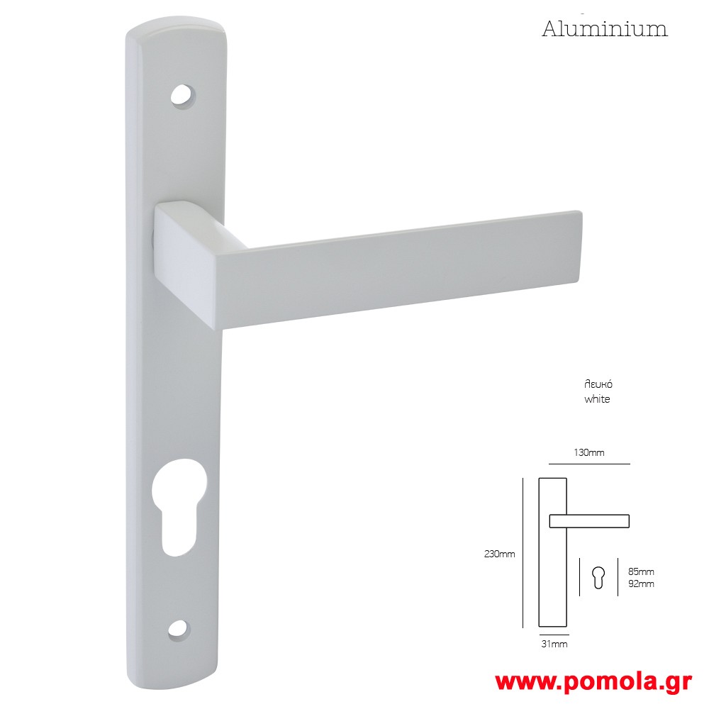 015 Πομολο πορτας με στενη πλακα λευκο ματ msv