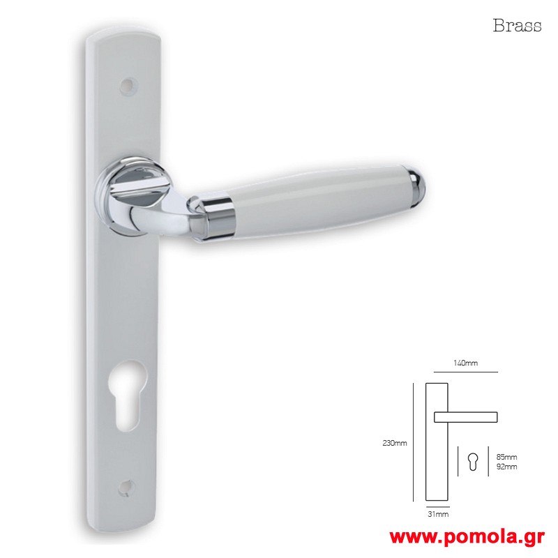 054 Πομολο πορτας με στενη πλακα λευκο ορο msv