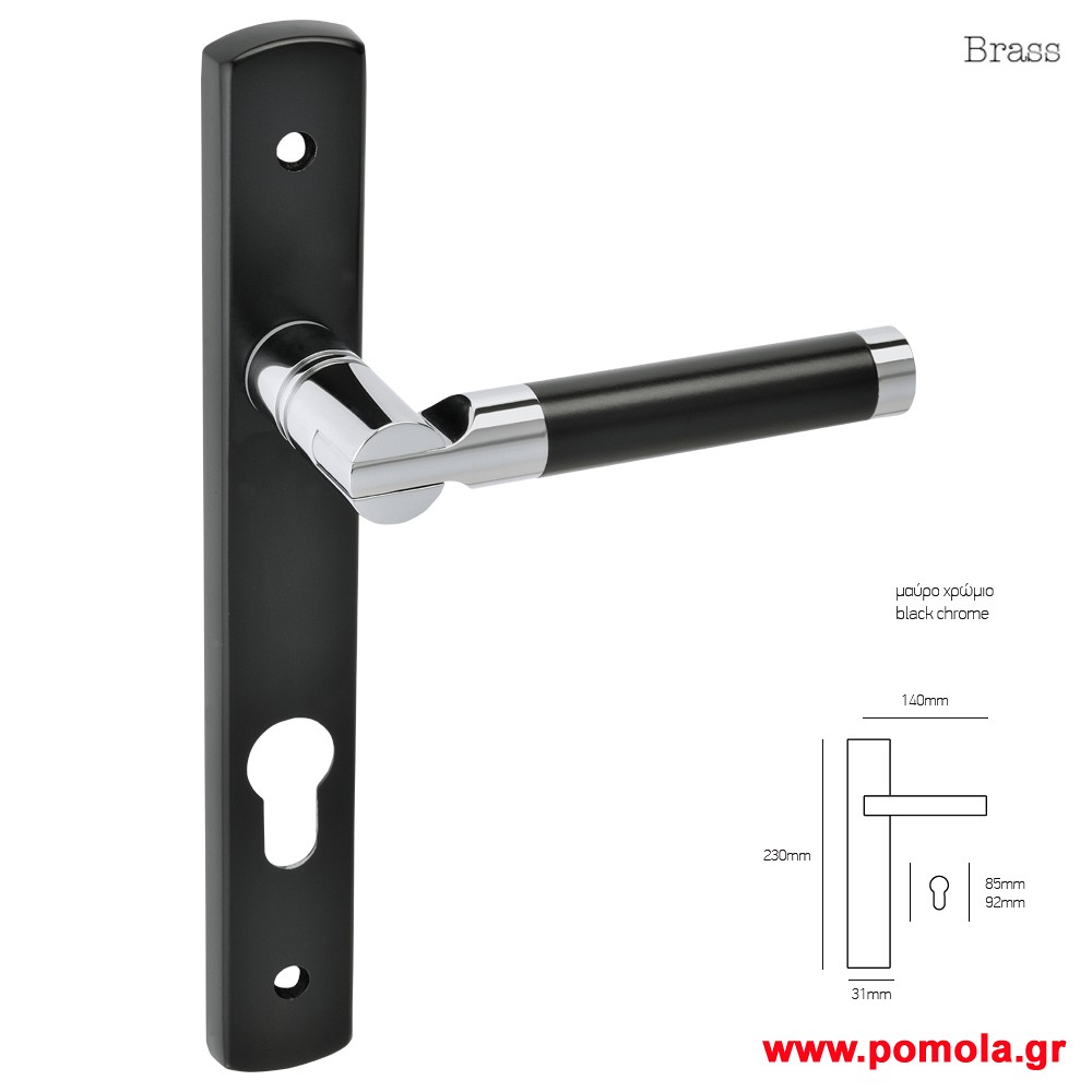 063 Πομολο πορτας με στενη πλακα μαυρο ματ χρωμιο msv