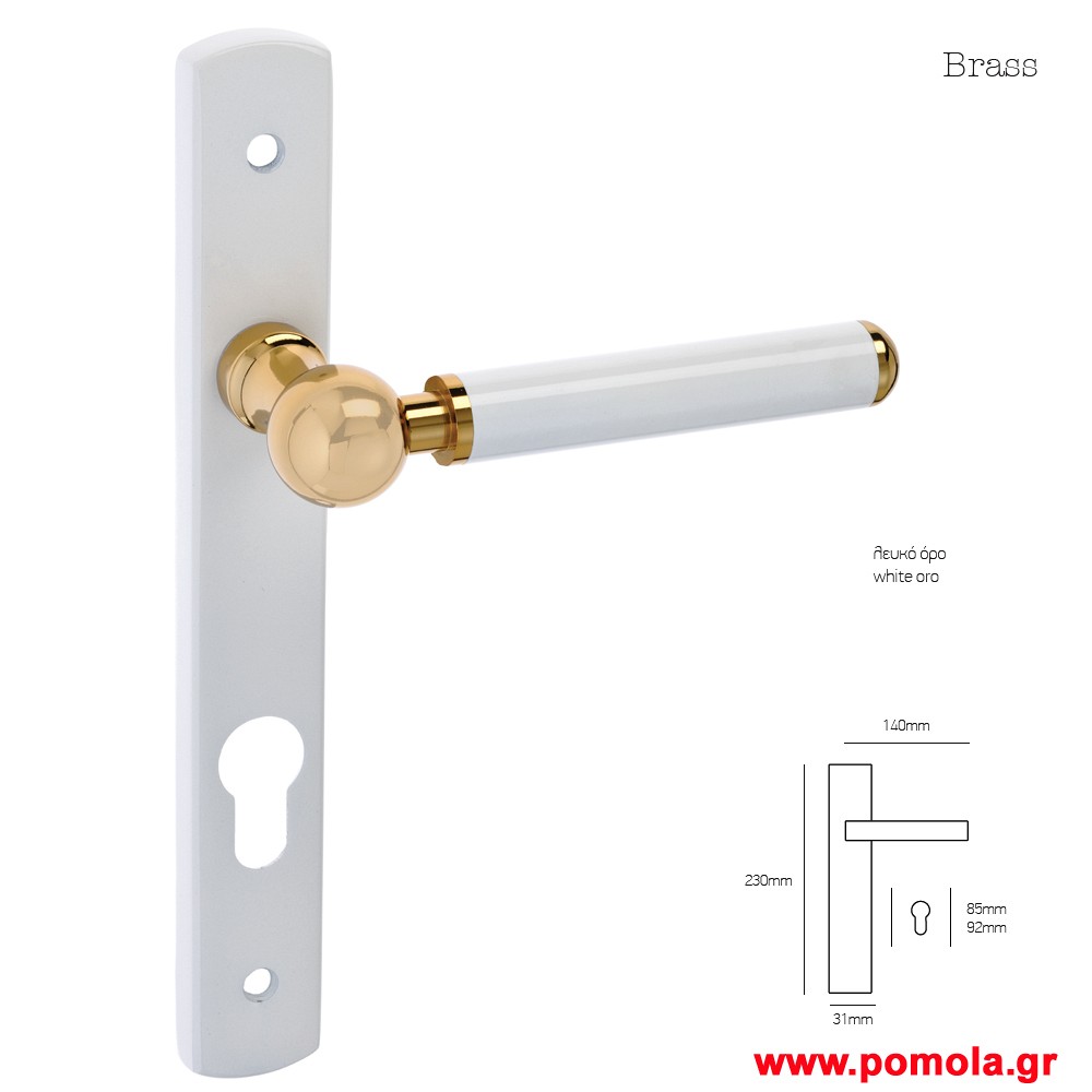 040 Πομολο πορτας με στενη πλακα λευκο ορο msv