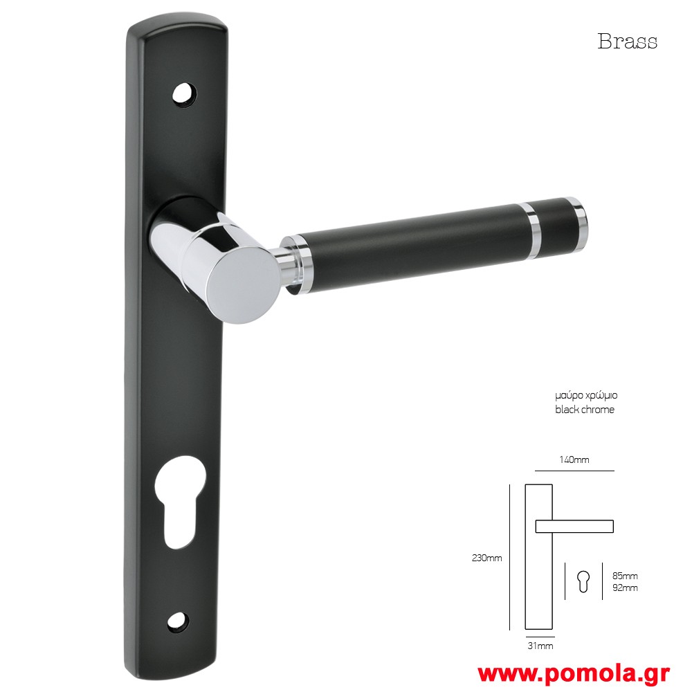 063 Πομολο πορτας με στενη πλακα μαυρο ματ χρωμιο msv