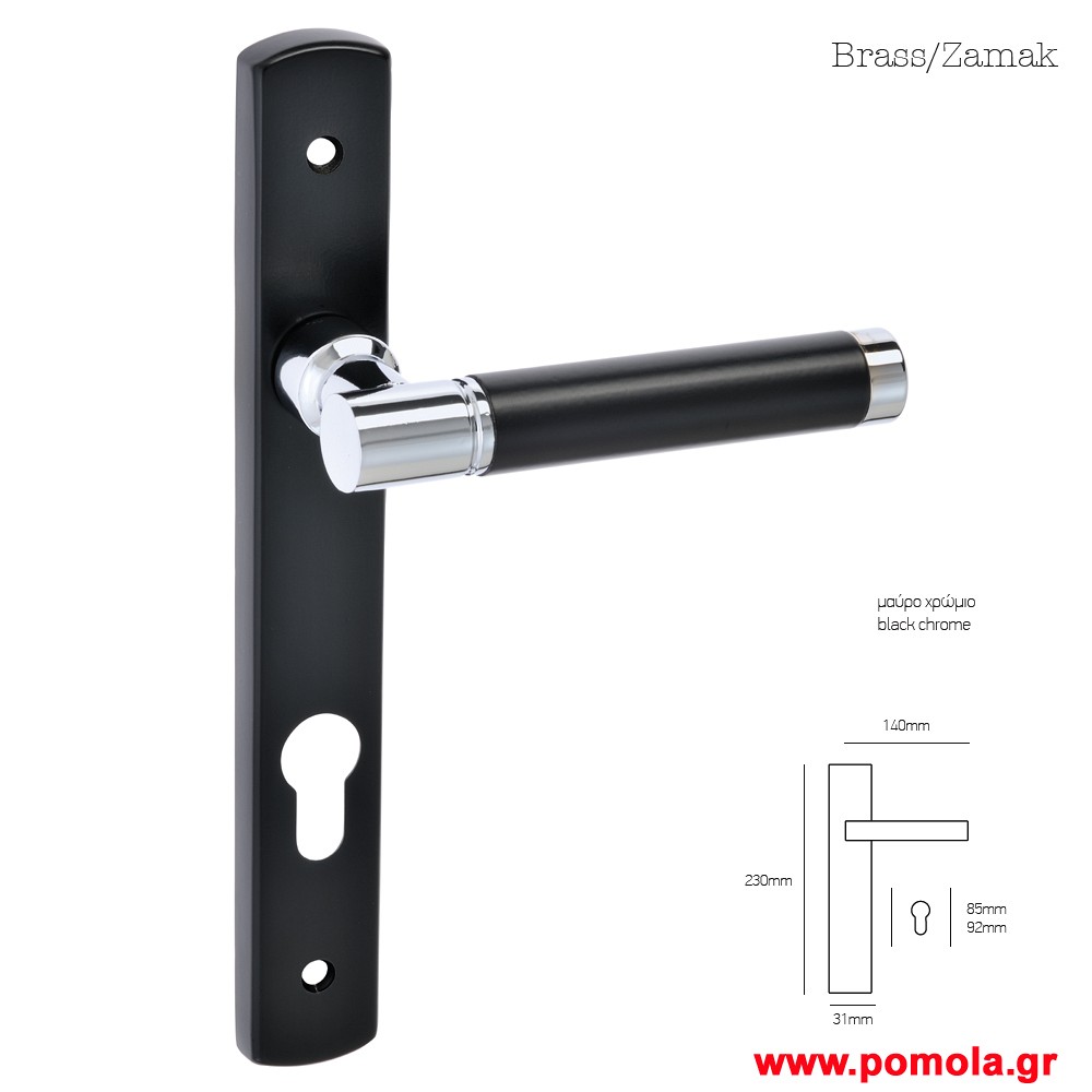 046 Πομολο πορτας με στενη πλακα μαυρο ματ χρωμιο msv