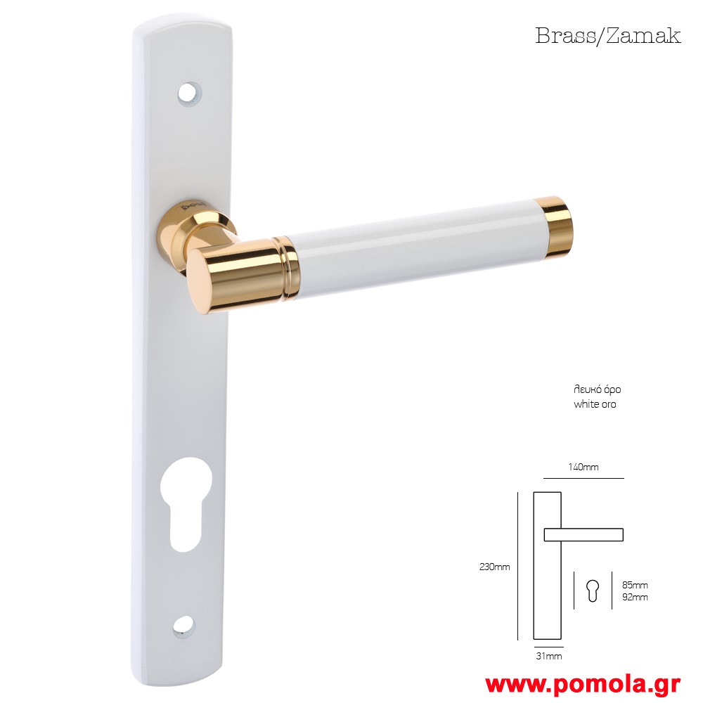 038 Πομολο πορτας με στενη πλακα λευκο ορο msv