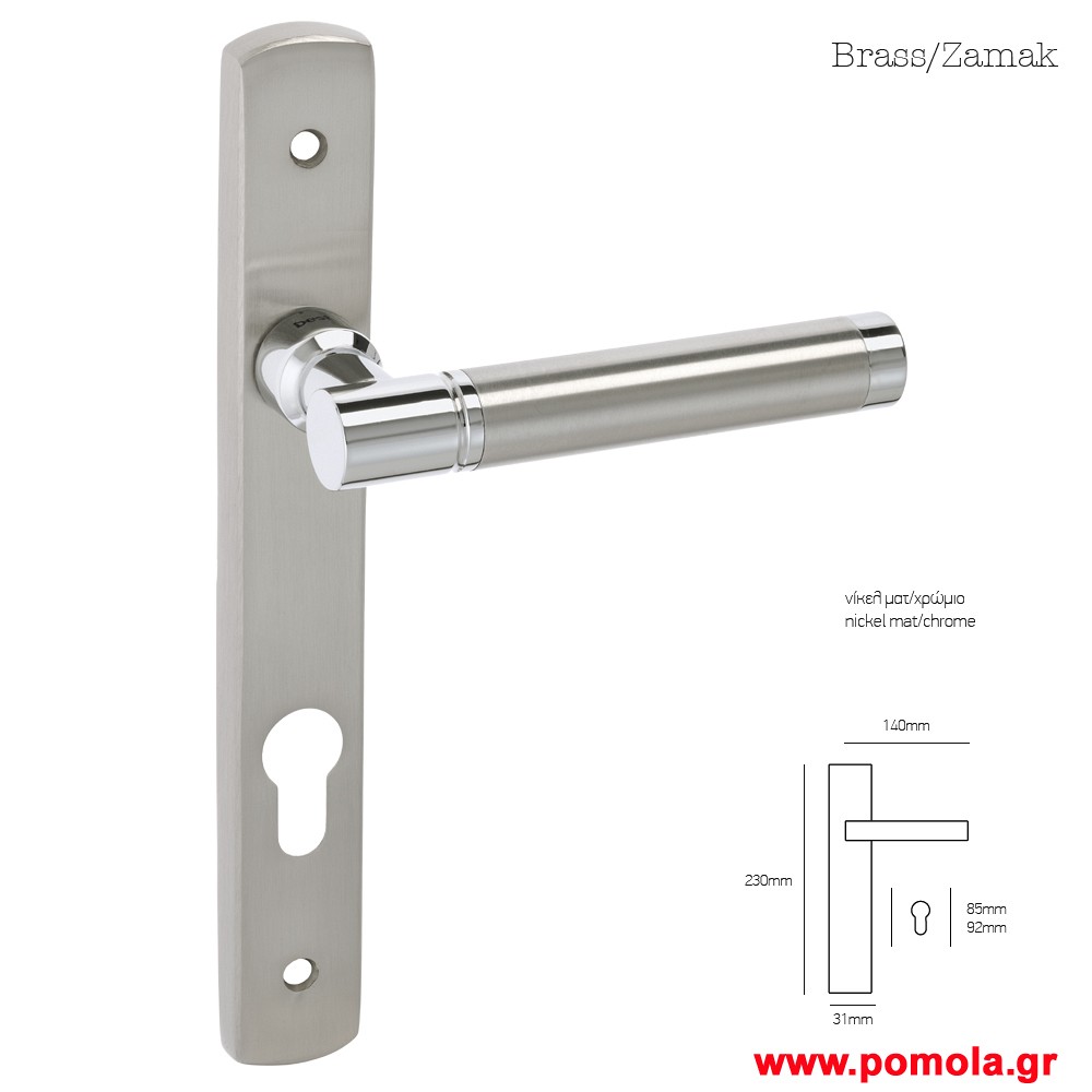 022 Πομολο πορτας με στενη πλακα νικελ ματ msv
