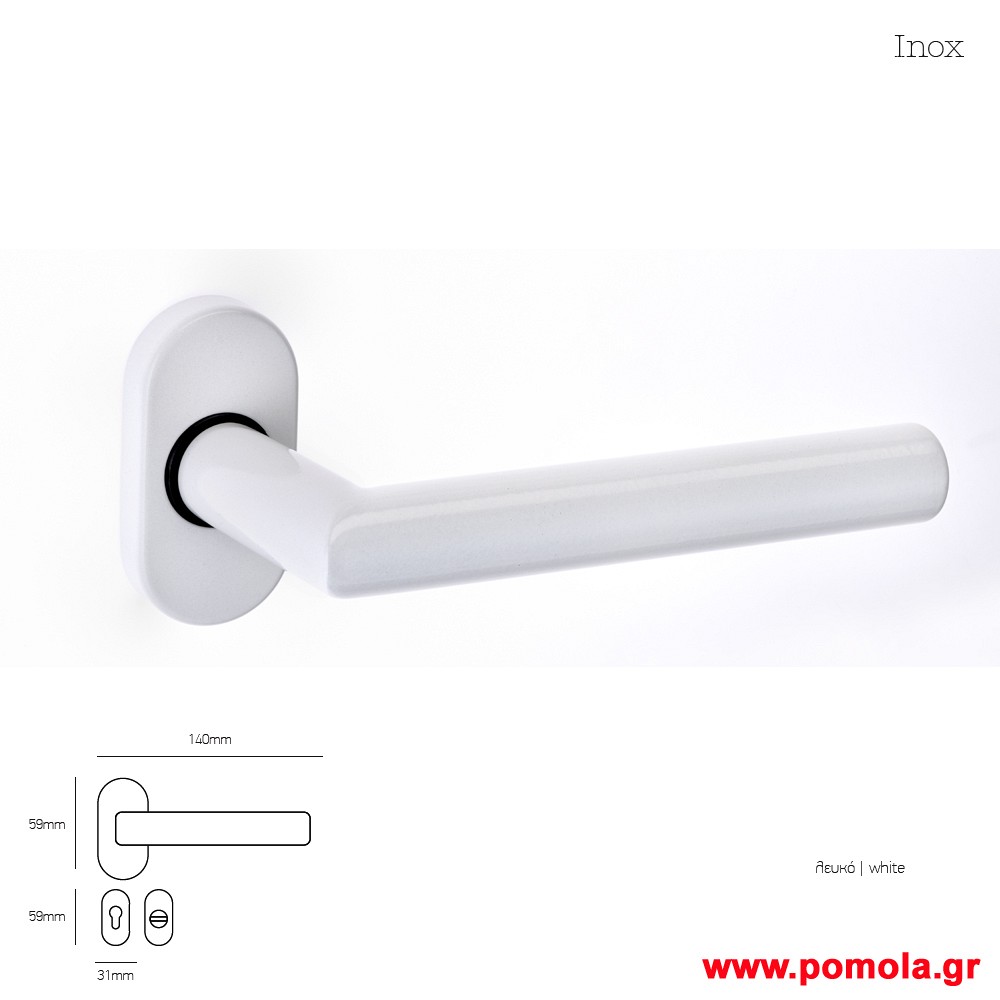 083 Πομολο πορτας με στενη ροζετα ανοξειδωτο λευκο ματ msv