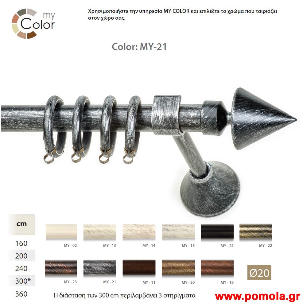 021 Κουρτινοβεργα Σφυριλατη σε χρωμα κασσιτερου φ25