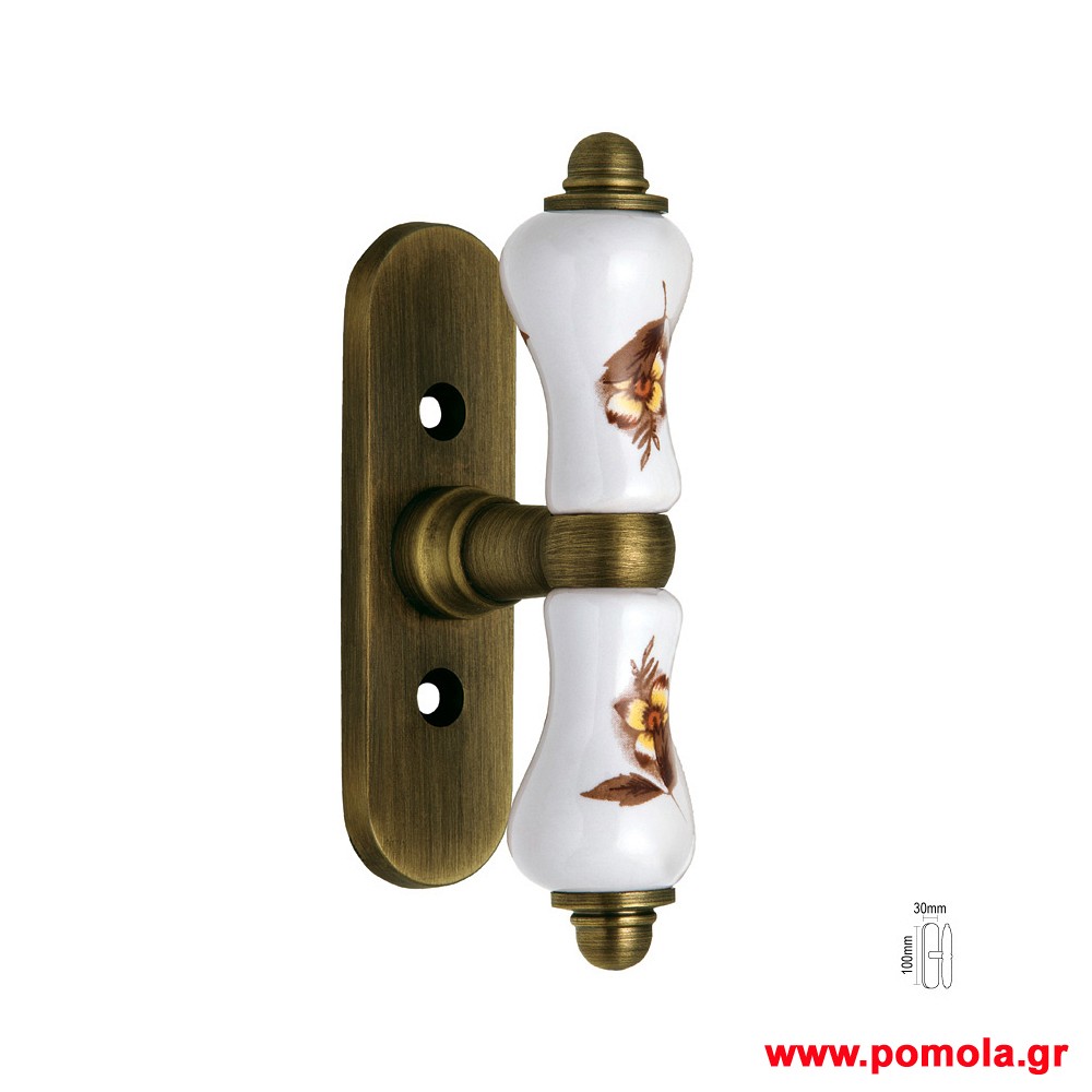 Roline Κ315 Γρυλόχερο Παραθύρου Ανάκλησης από Ορείχαλκο & Πορσελάνη Old Silver-Κρακελέ 32x62x129mm