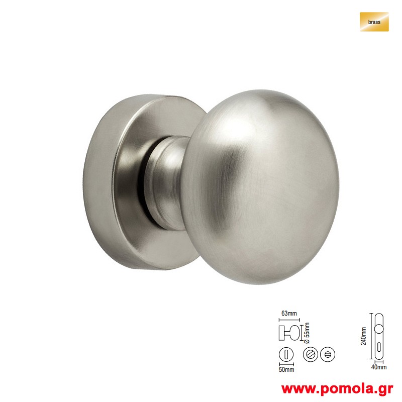 027 Πομολο πορτας με πλακα νικελ ματ χρωμιο zbls