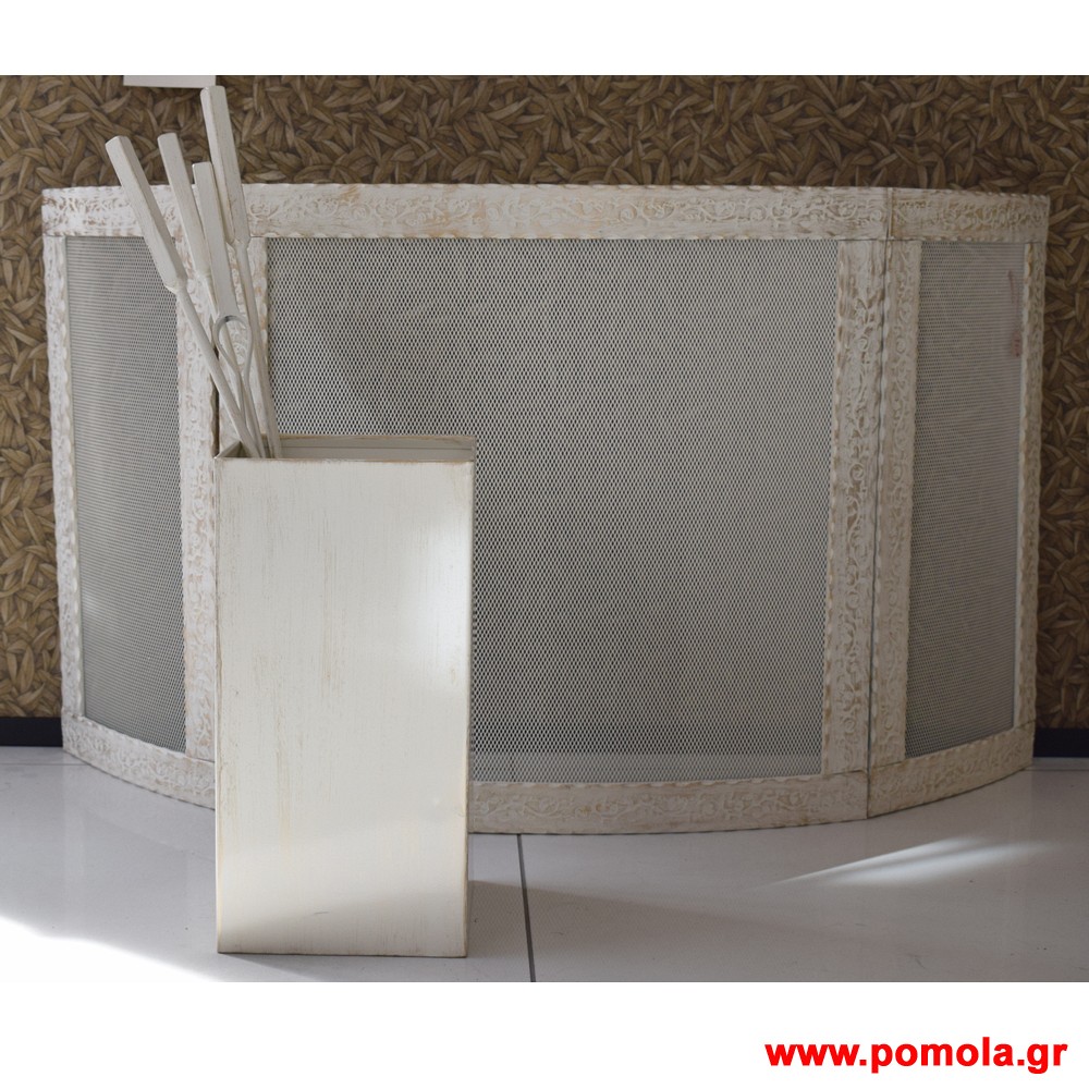 205 Καλυψη τζακιου κουρμπαριστη κρεμ χρυσο με εργαλεια