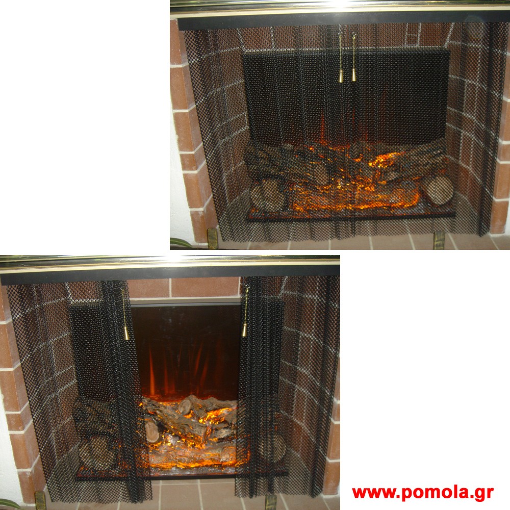 216 Κάλυψη τζακιού απο μασίφ σφυρίλατη βέργα σε όψη ξύλου τριανταφυλλιάς