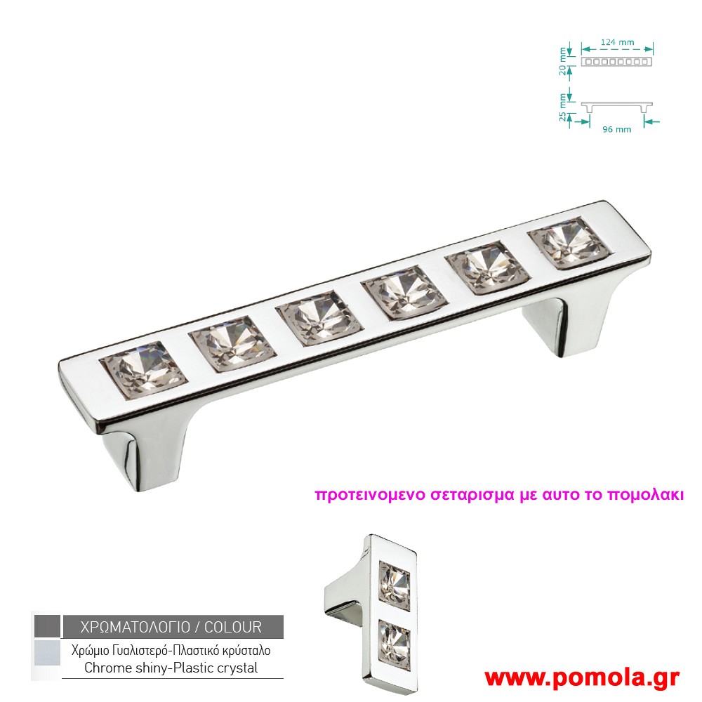 Κωδικός: 00141693350 Λαβη κουζινας ντουλαπας ή επιπλου χρωμιο με κρυσταλλο zbls