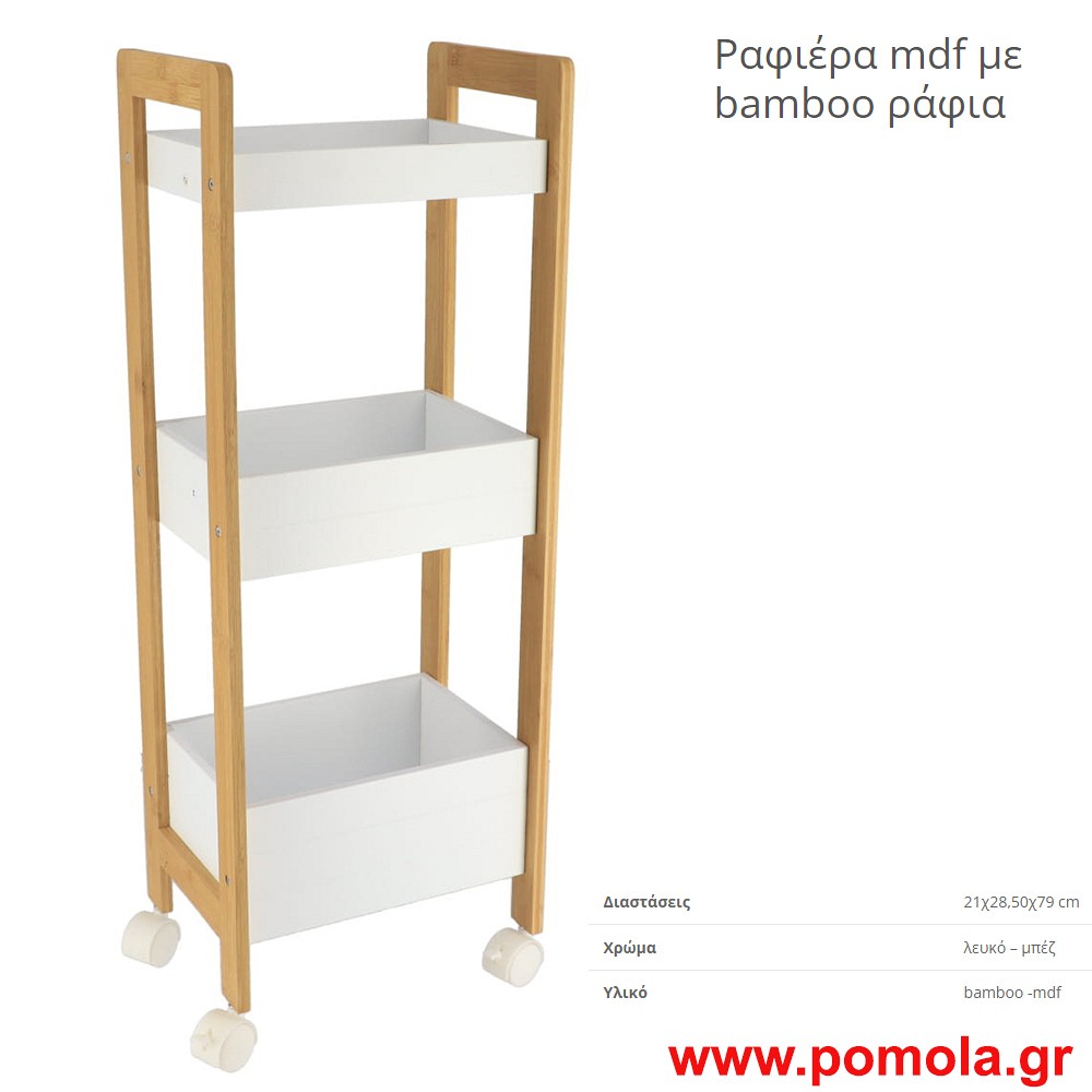 Ραφιερα μεταλλικη με ροδες και bamboo ραφια