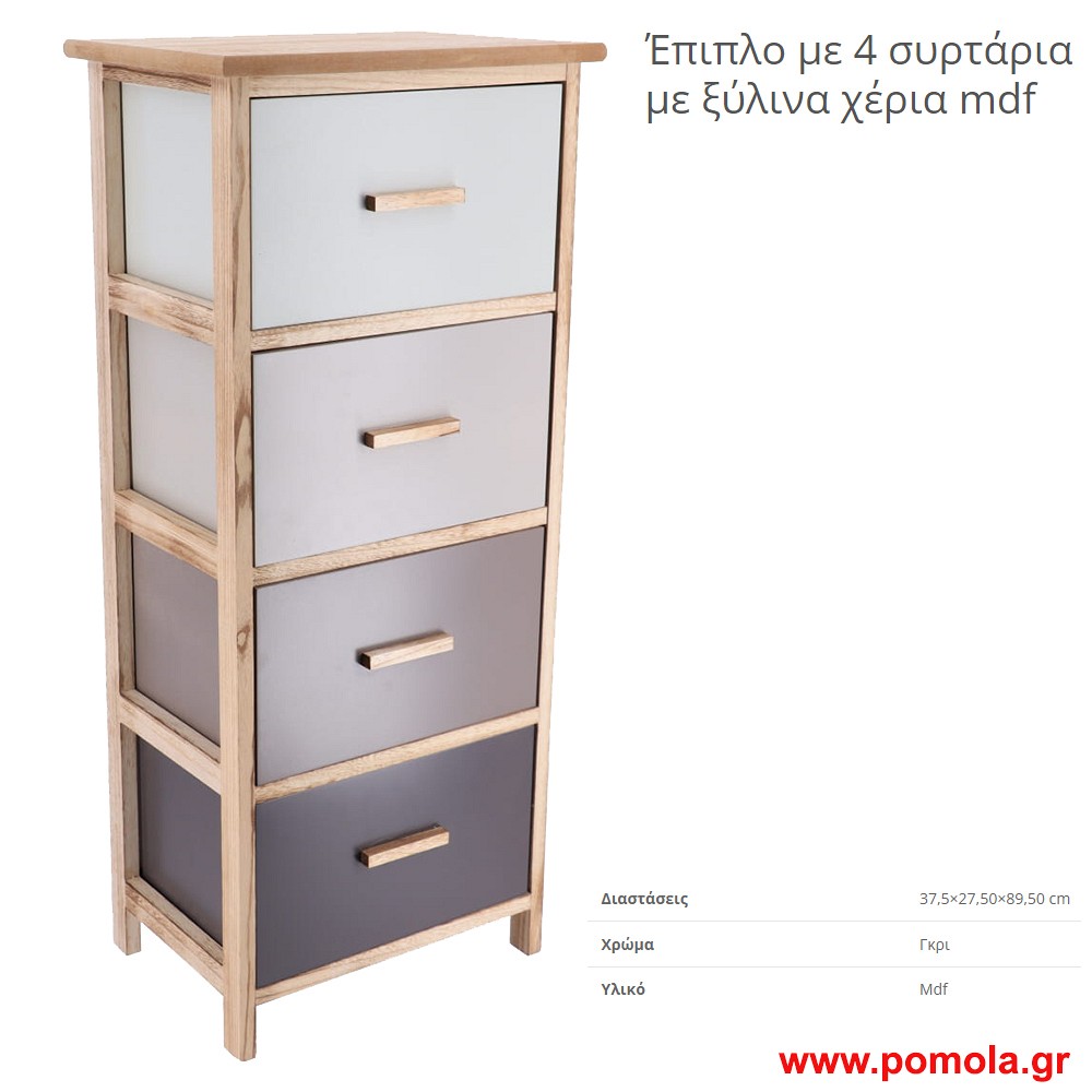 Επιπλο μπανιου mdf με 4 συρταρια γκρι λευκο
