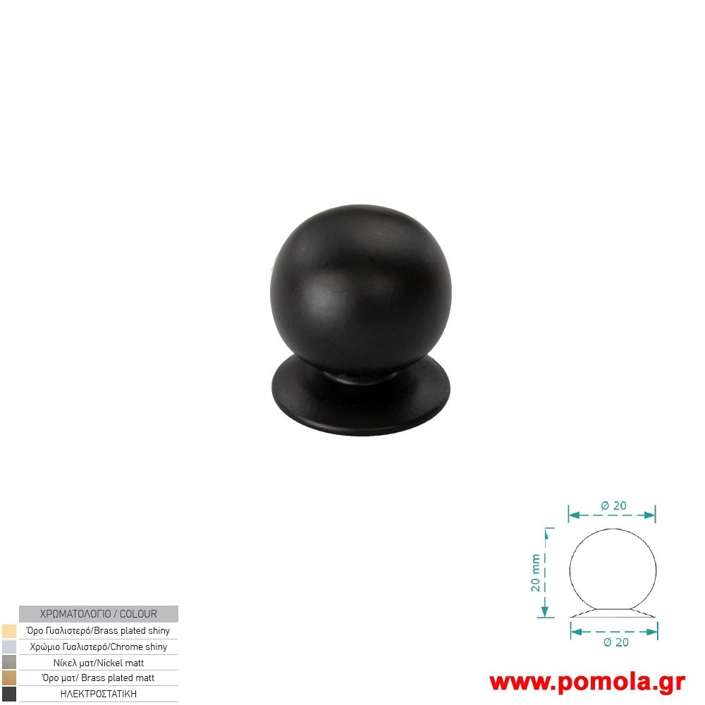 196 Πομολακι κουζινας ντουλαπας ή επιπλου μαυρο ματ zbls