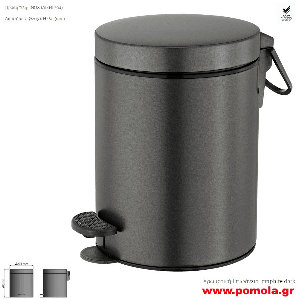 Κωδικός: 00142513600 Χαρτοδοχειο 5 λιτρων με soft close σε χρωμα Γραφιτη σκουρο