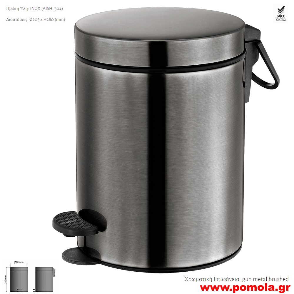 Κωδικός: 00142521608 Χαρτοδοχειο 5 λιτρων με soft close σε χρωμα γκρι μεταλλικο ματ