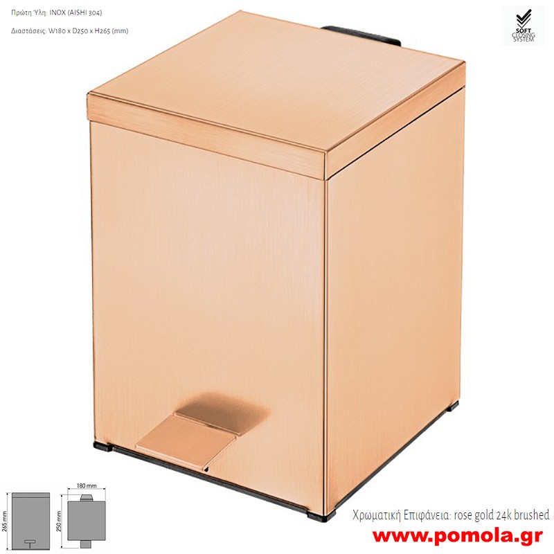 Κωδικός: 00142693645 Χαρτοδοχείο τετράγωνο 5 λίτρων με soft close σε χρώμα ρόζ χρυσό ματ 24 καρατίων