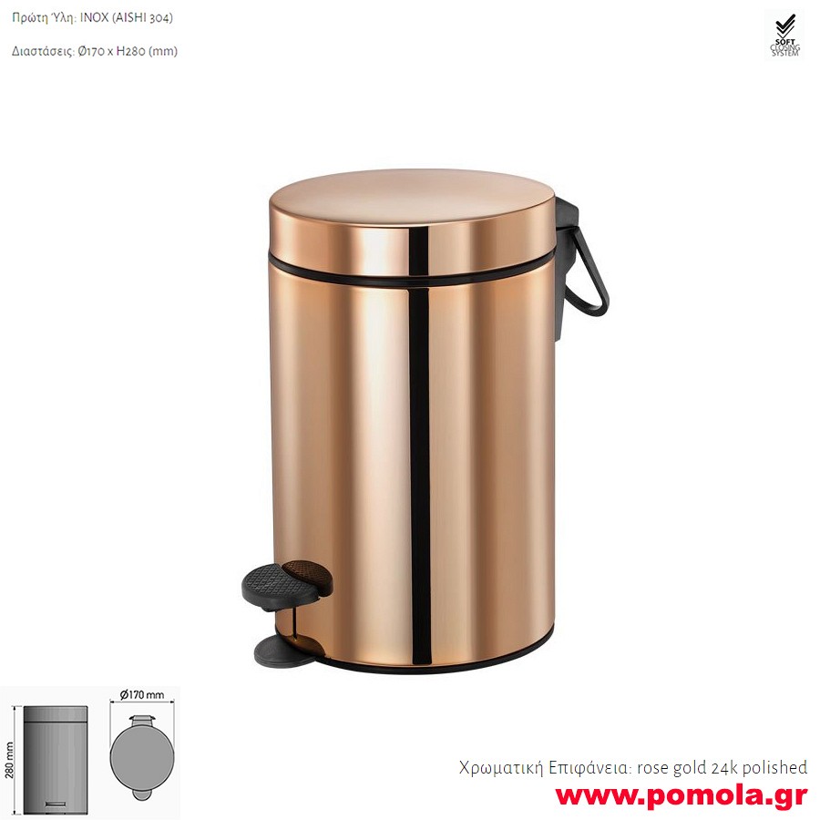 Κωδικός: 00142696648 Χαρτοδοχείο 3 λίτρων με soft close σε χρώμα ροζ χρυσό γυαλιστερό 24 καρατίων