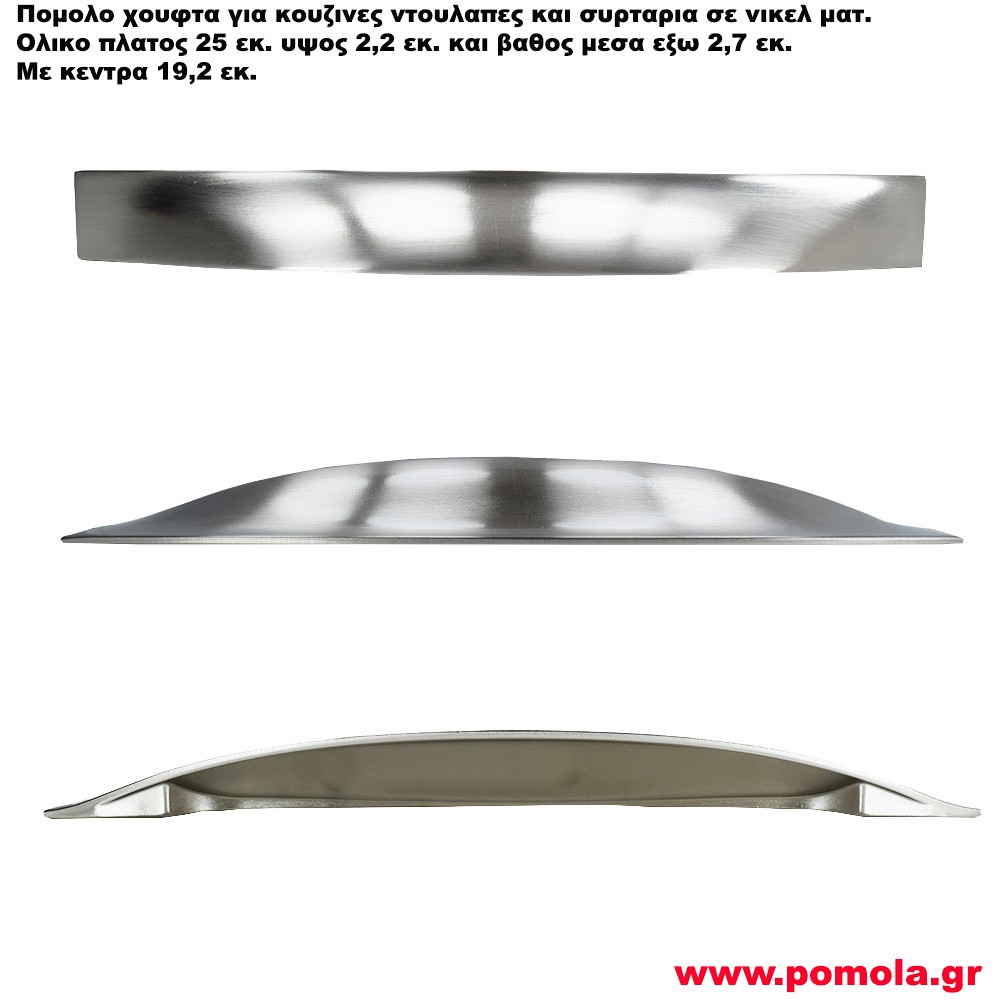 1760 Πόμολο νίκελ ματ χούφτα κουζίνας ντουλάπας ή επίπλου ΙΤΑΛΙΑΣ