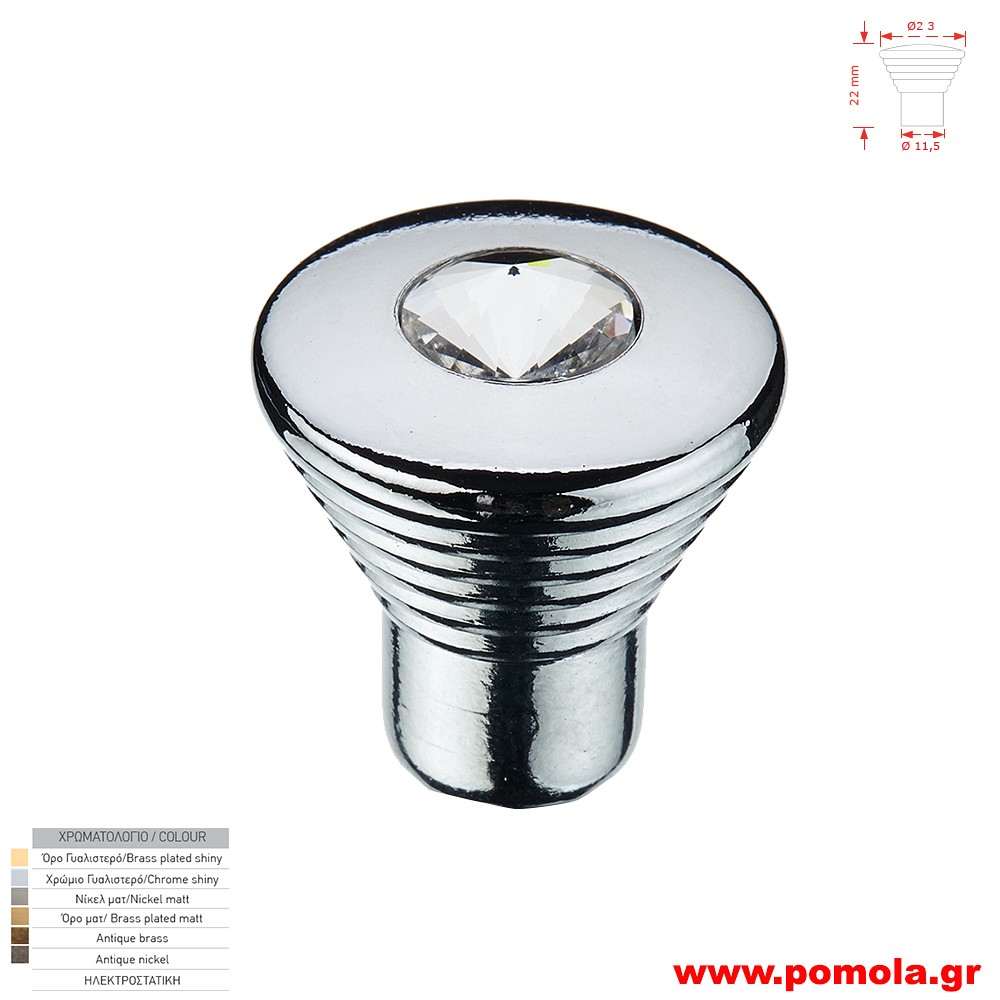 Κωδικός: 00142810173 Πομολακι κουζινας, ντουλαπας ή επιπλου με κρυσταλλο ασφουρ χρωμιο zbls