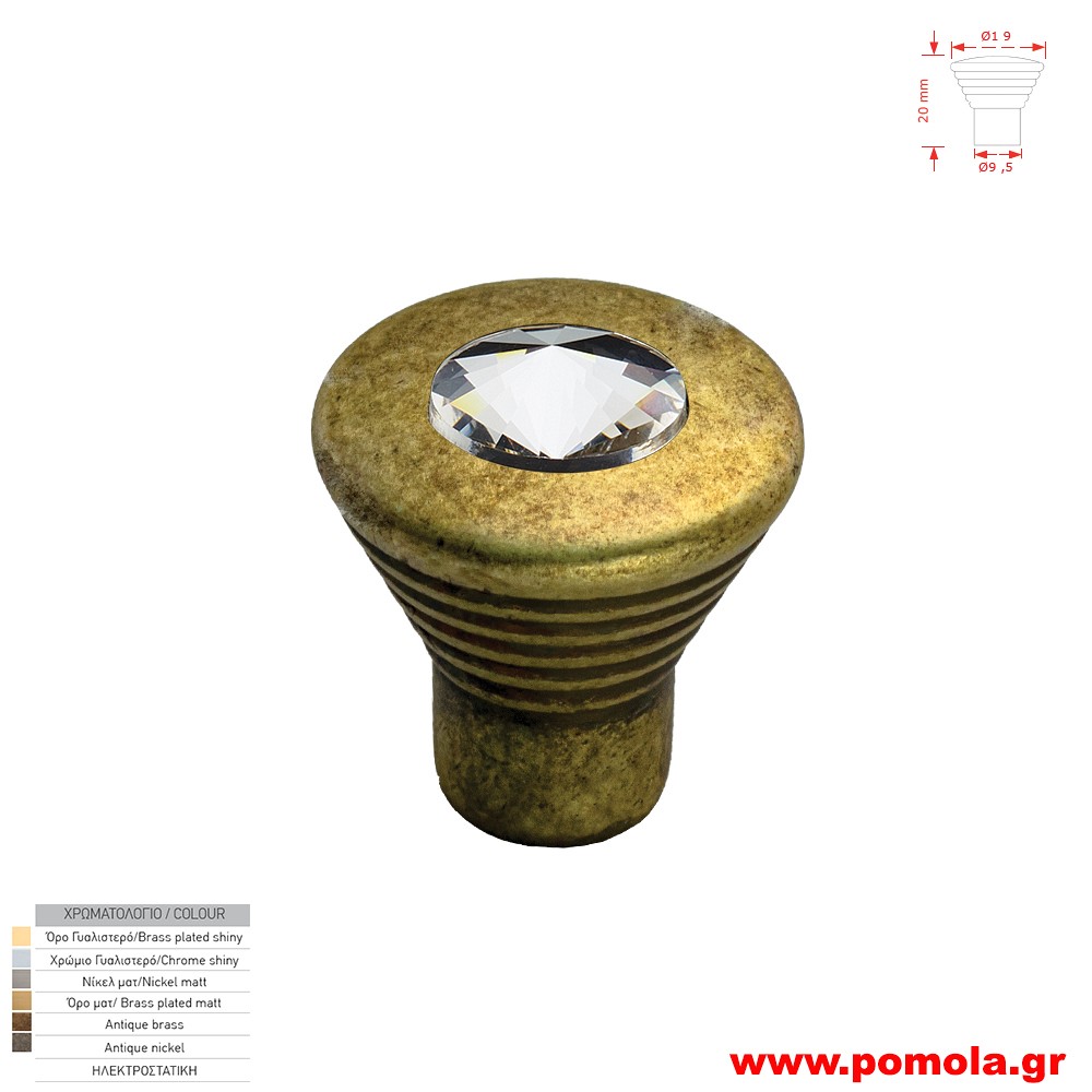 Κωδικός: 00142843186 Πομολακι κουζινας ντουλαπας ή επιπλου με κρυσταλλο Asfour αντικε μπρονζε zbls