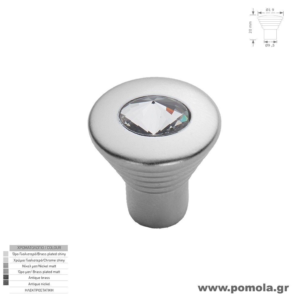 Κωδικός: 00142873154 Πομολακι κουζινας ντουλαπας ή επιπλου με κρυσταλλο Asfour νικελ ματ zbls