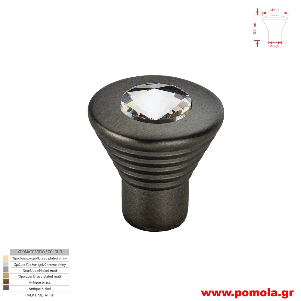 124 Πομολάκι ορειχαλκινο νικελ ματ με κρύσταλλο SWAROVSKI msv