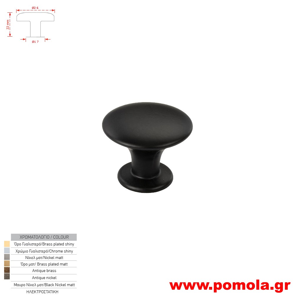 077 Πομολακι κουζινας ντουλαπας ή επιπλου μαυρο ματ zbls