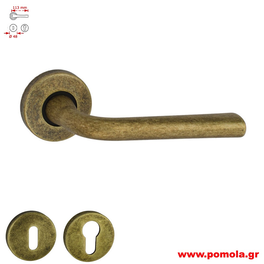 Roline Κ370 Πόμολο Πόρτας για PVC με Ροζέτα από Ορείχαλκο Αντικέ 32x62x114mm