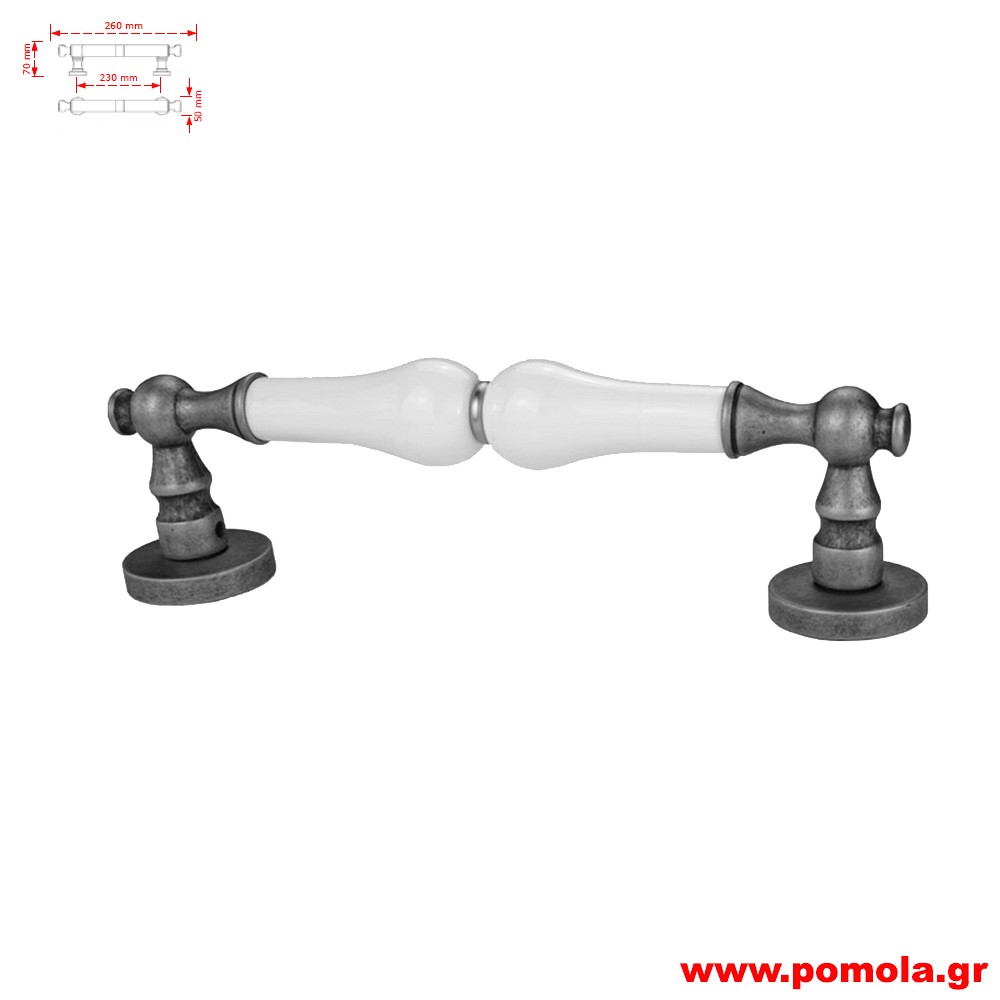 Roline Κ315 Λαβή Εξώπορτας από Ορείχαλκο & Πορσελάνη Old Silver-Κρακελέ με Kέντρα 216mm