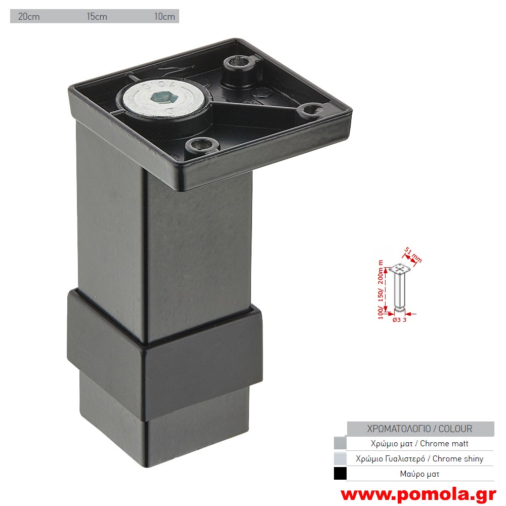 054 Ποδι επιπλου τετραγωνο μαυρο ματ knmds