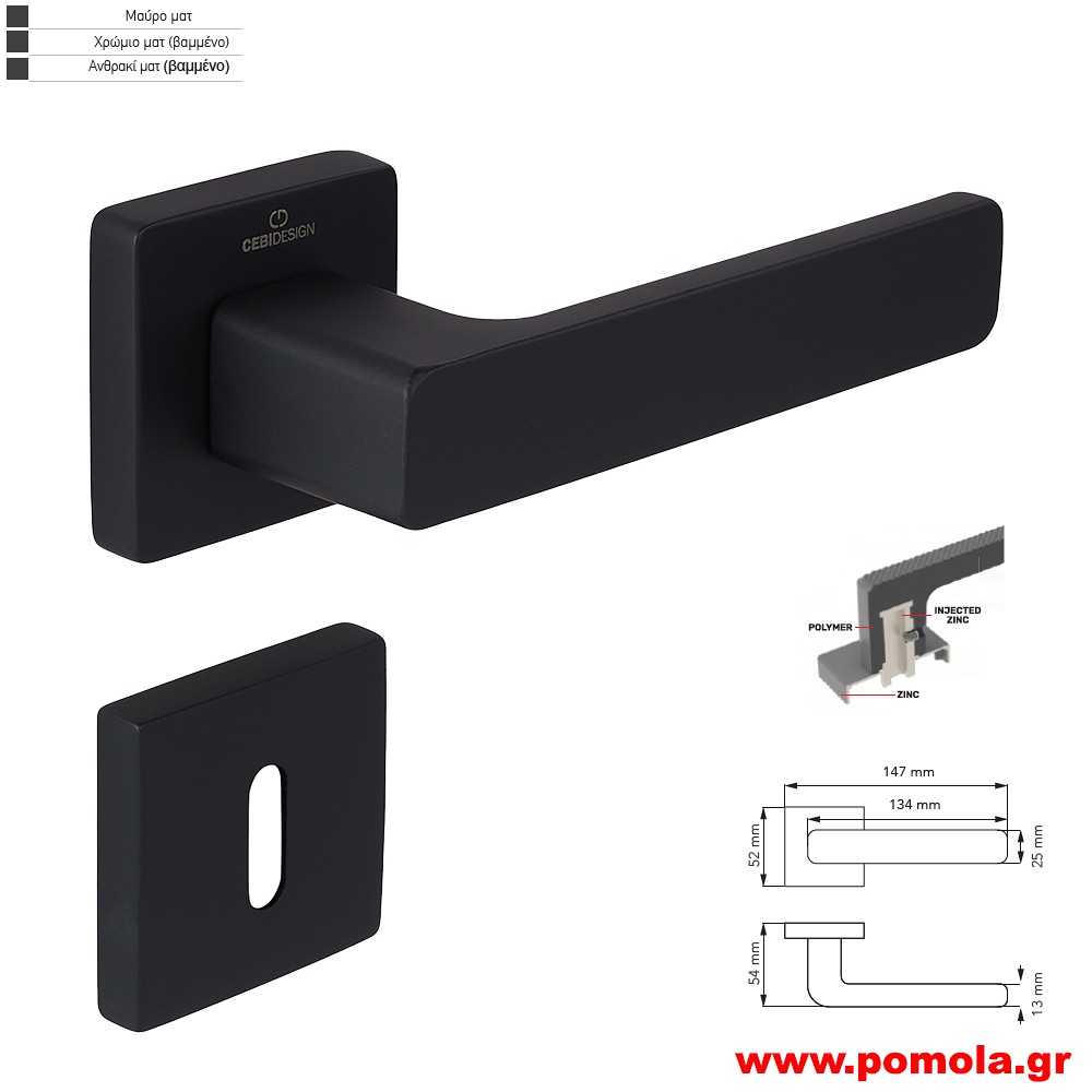 Κωδικός: 00144530144 Πόμολο πόρτας πλαστικό με μεταλλικη ροζέτα, μαυρο ματ zbls