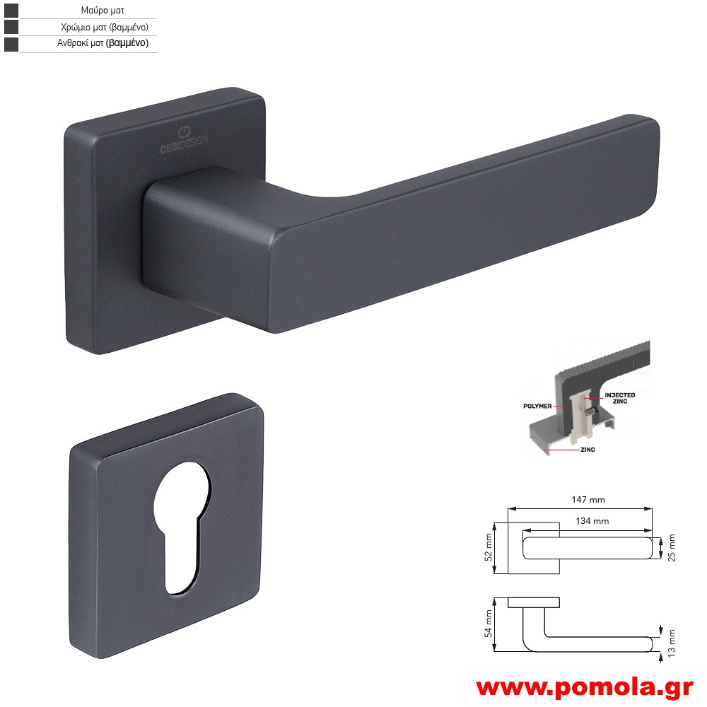Κωδικός: 00144536150 Πόμολο εξωπόρτας πλαστικό με μεταλλικη ροζέτα, ανθρακι zbls