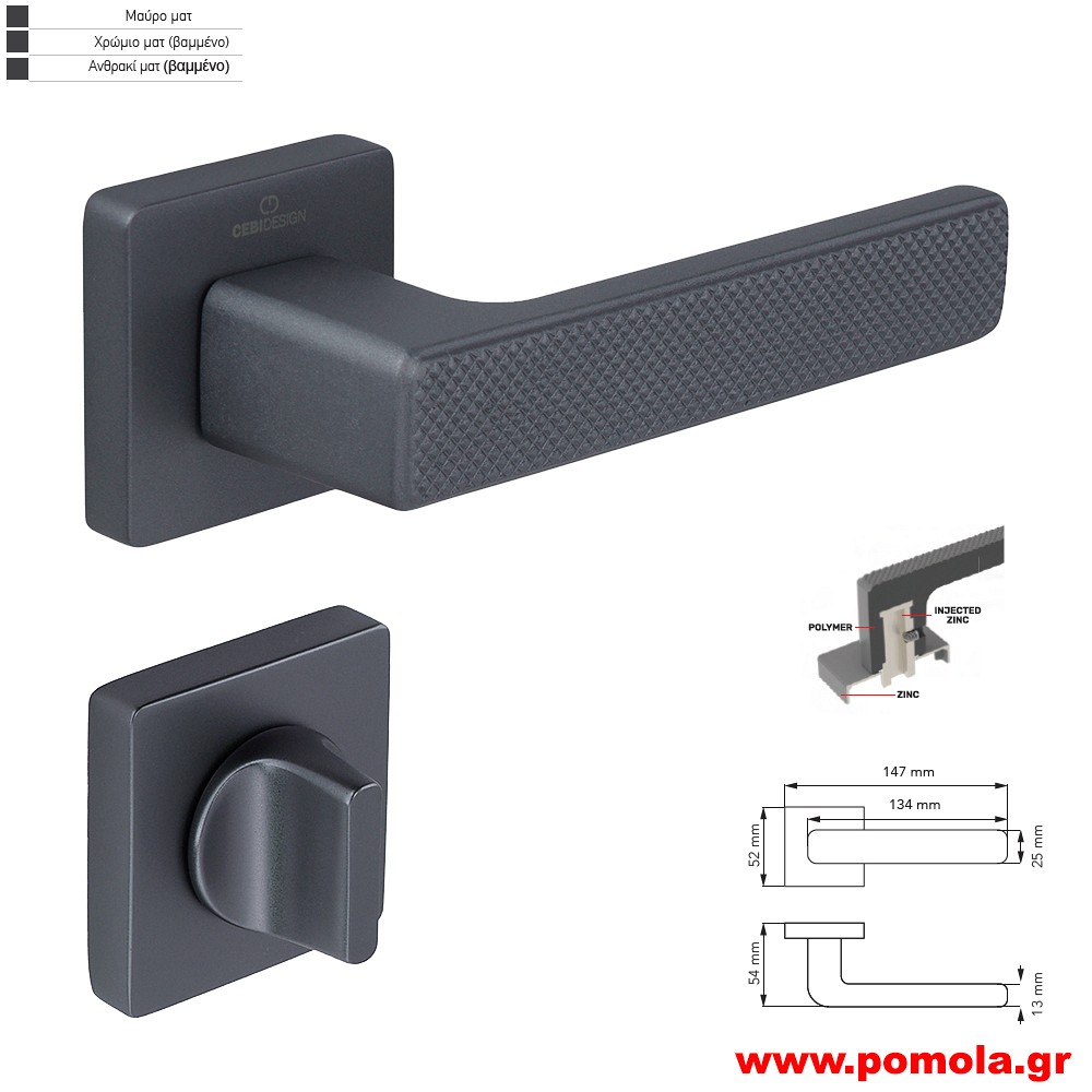 Κωδικός: 00144542156 Πόμολο πόρτας πλαστικό με μεταλλικη ροζέτα wc λουτρού, ανθρακι zbls