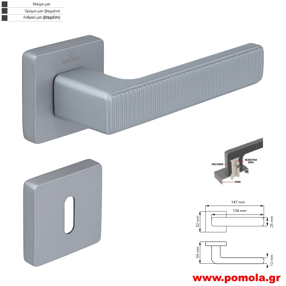 Κωδικός: 00144543157 Πόμολο πόρτας πλαστικό με μεταλλικη ροζέτα, γκρι- χρώμιο ματ zbls