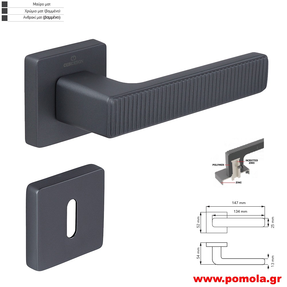 Κωδικός: 00144545159 Πόμολο πόρτας πλαστικό με μεταλλικη ροζέτα, ανθρακί zbls