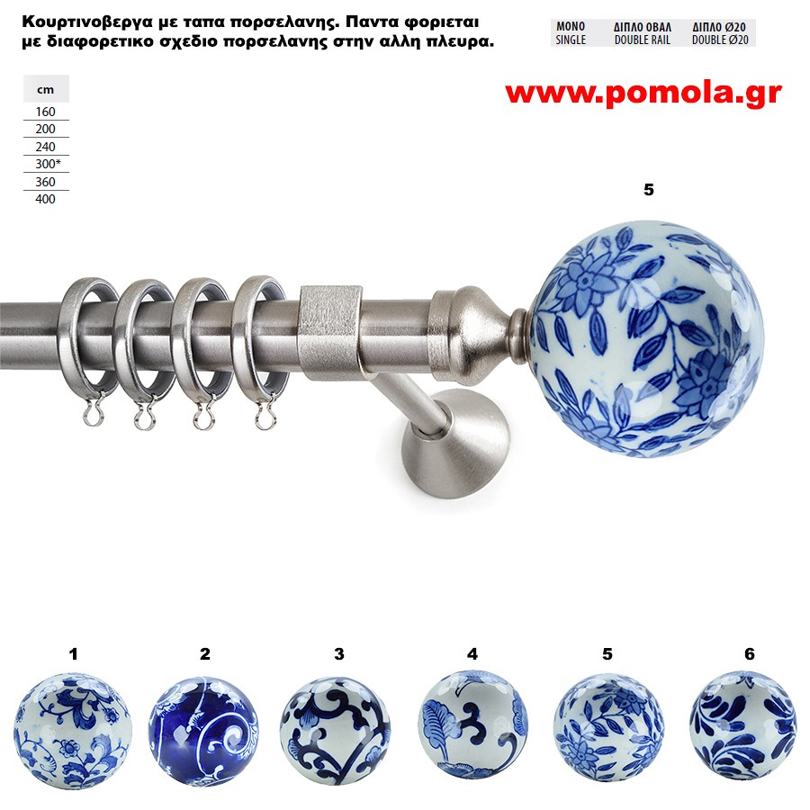 025 Κουρτινοβεργα με ακρο πορσελανης