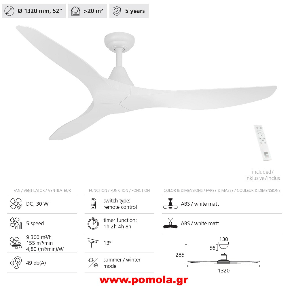 SE LED F50 MARCO WHITE FAN 30W*2 SMART WITH CONTROL 50X50X20cm 3000K-6500K 85-265V 2 YEARS WARR