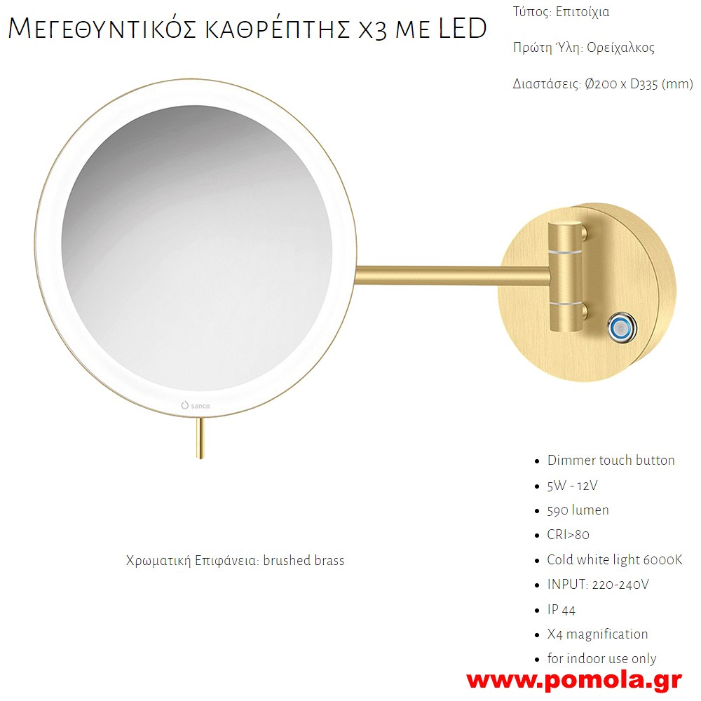 059 ΚΑΘΡΕΠΤΗΣ ΜΕΓΕΘΥΝΤΙΚΟΣ Χ3 ΜΕ ΦΩΣ LED ΧΡΥΣΟ ΜΑΤ