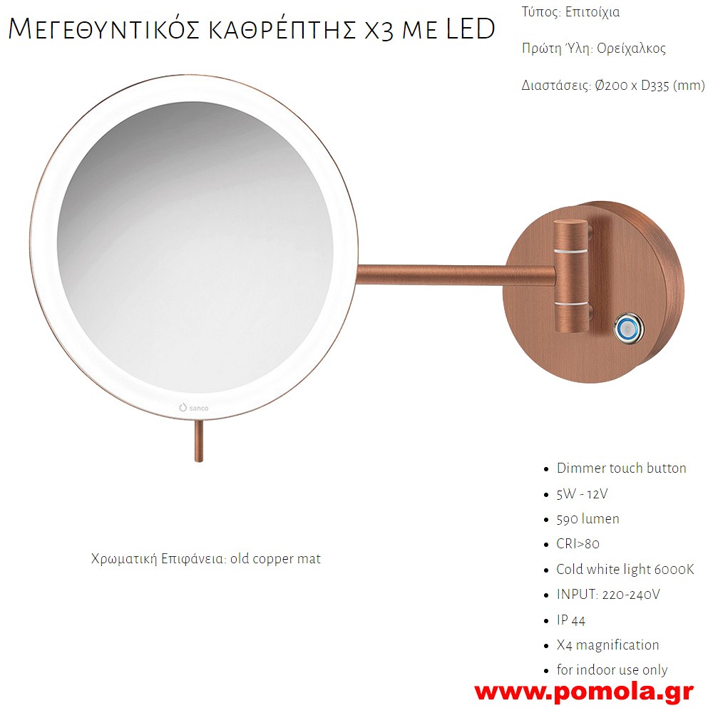 062 ΚΑΘΡΕΠΤΗΣ ΜΕΓΕΘΥΝΤΙΚΟΣ Χ3 ΜΕ ΦΩΣ LED ΧΑΛΚΟΣ ΜΑΤ