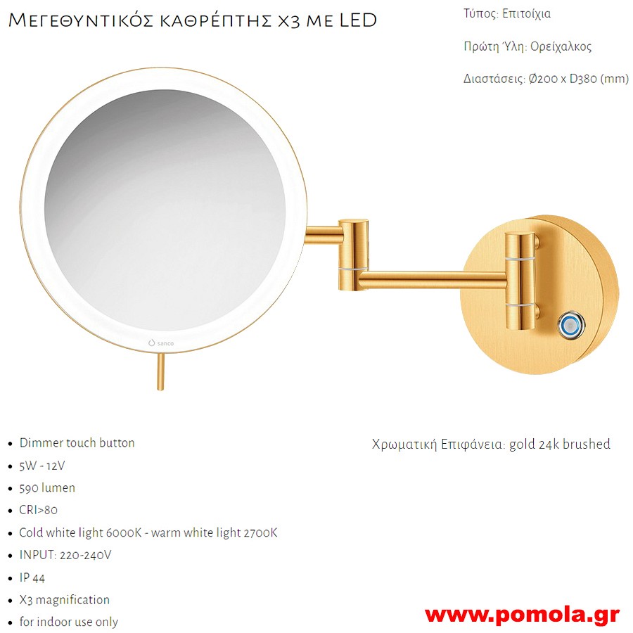 006 ΚΑΘΡΕΠΤΗΣ ΜΕΓΕΘΥΝΤΙΚΟΣ Χ3 ΜΕ ΦΩΣ LED ΧΡΥΣΟ ΜΑΤ 24 Κ