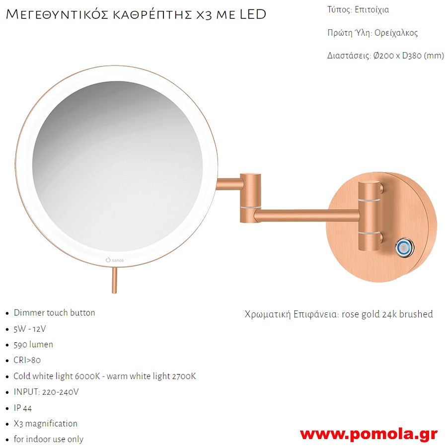 035 ΚΑΘΡΕΠΤΗΣ ΜΕΓΕΘΥΝΤΙΚΟΣ Χ3 ΜΕ ΦΩΣ LED ΡΟΖ ΧΡΥΣΟ ΓΥΑΛΙΣΤΕΡΟ 24Κ
