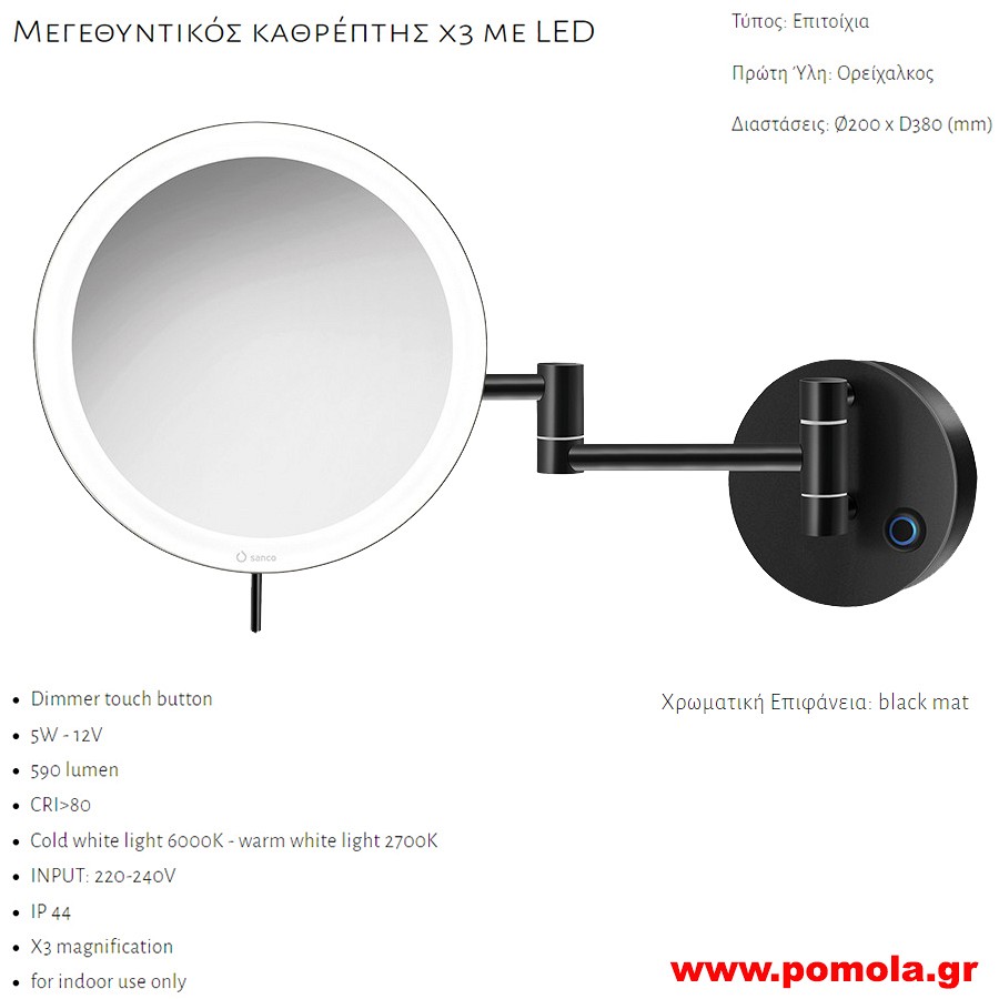 010 ΚΑΘΡΕΠΤΗΣ ΜΕΓΕΘΥΝΤΙΚΟΣ Χ3 ΜΕ ΦΩΣ LED ΜΑΥΡΟ ΜΑΤ