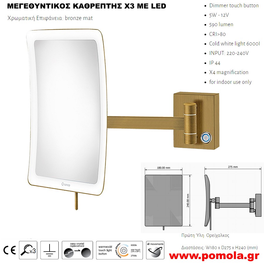 034 ΚΑΘΡΕΠΤΗΣ ΜΕΓΕΘΥΝΤΙΚΟΣ Χ3 ΜΕ ΦΩΣ LED ΣΚΟΥΡΟ ΜΠΡΟΝΖΕ ΜΑΤ