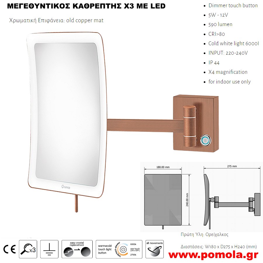 062 ΚΑΘΡΕΠΤΗΣ ΜΕΓΕΘΥΝΤΙΚΟΣ Χ3 ΜΕ ΦΩΣ LED ΧΑΛΚΟΣ ΜΑΤ
