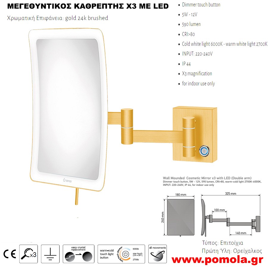 087 ΚΑΘΡΕΠΤΗΣ ΜΕΓΕΘΥΝΤΙΚΟΣ Χ3 ΧΡΥΣΟ ΜΑΤ ΜΕ ΦΩΣ LED