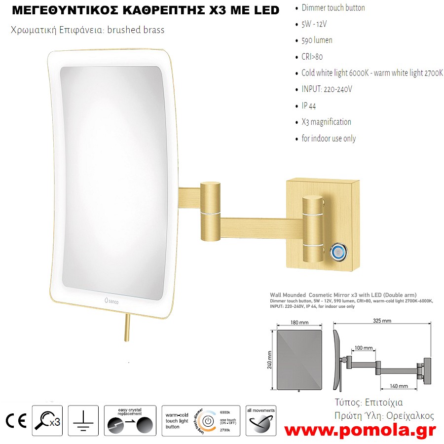 031 ΚΑΘΡΕΠΤΗΣ ΜΕΓΕΘΥΝΤΙΚΟΣ Χ3 ΜΕ ΦΩΣ LED ΕΠΙΚΑΘΗΜΕΝΟΣ ΧΡΩΜΕ