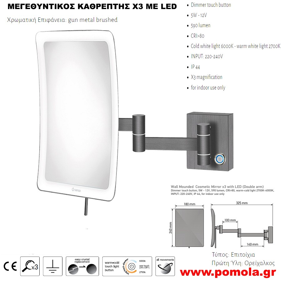 031 ΚΑΘΡΕΠΤΗΣ ΜΕΓΕΘΥΝΤΙΚΟΣ Χ3 ΜΕ ΦΩΣ LED ΕΠΙΚΑΘΗΜΕΝΟΣ ΧΡΩΜΕ